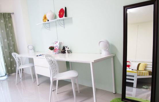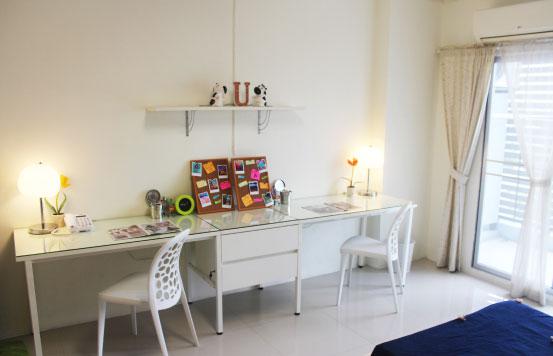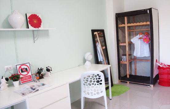 อยากอยู่คนเดียวแน่นอน ไม่ต้องการพื้นที่ห้องกว้างเกินไป ?| A: | สำหรับน้องๆ ที่ต้องการพื้นที่ห้องสำหรับพักคนเดียว แนะนำห้อง TI หรือ TO ค่ะ ห้องทั้ง 2 แบบนี้จะได้ เตียงควีนไซส์ 1 เตียง ชุดโต๊ะและเก้าอี้อเนกประสงค์ 1 ชุด พร้อม Closet Space ซึ่งพื้นที่ห้องจะกะทัดรัดกว่า ห้อง Standard ทำให้ประหยัดค่าไฟมากกว่าค่ะ ^_^ |